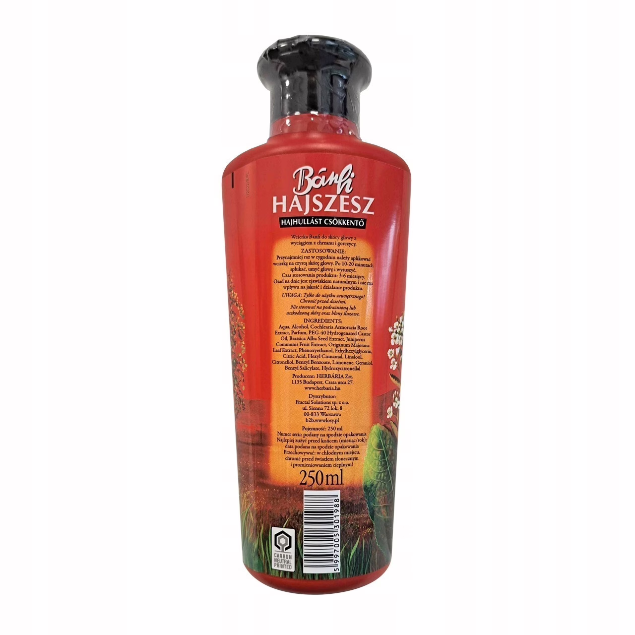 Składniki aktywne: Wcierka zawiera tłoczony pod ciśnieniem i filtrowany alkoholowy ekstrakt z chrzanu, gorczycy, jałowca oraz majeranku. Ekstrakty te wspomagają regenerację cebulek włosowych, poprawiają ukrwienie skóry głowy, stymulując wzrost nowych włosów i pomagając w walce z ich wypadaniem.