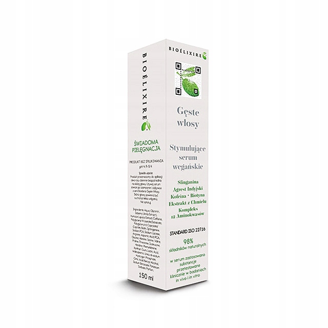 Bioelixire Gęste Włosy to serum, które pozwoli Ci cieszyć się gęstymi, mocnymi, zdrowymi włosami. Jego receptura oparta jest na substancjach, które pozytywnie wpływają na włosy już na poziomie cebulek. W skład preparatu wchodzą: sfinganina, agrest indyjski, biotyna, kofeina, ekstrakt z chmielu, liczne aminokwasy i wiele innych, niezwykle cennych dla włosów, produktów. Serum przyspiesza wzrost włosów i przeciwdziała ich nadmiernemu wypadaniu. Uelastycznia włókna, zmniejsza ich łamliwość i uodparnia na działanie czynników zewnętrznych.