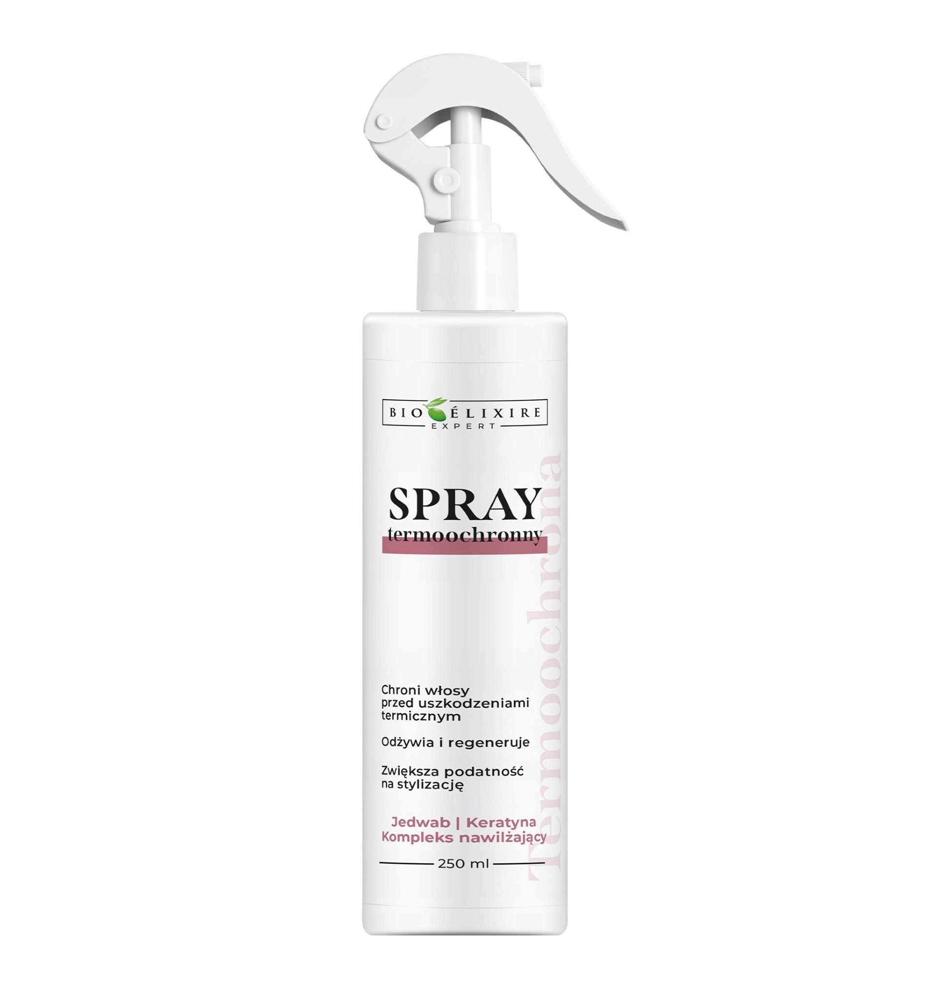 Doskonały produkt od Bioelixire, który zabezpieczy Twoje włosy podczas częstej stylizacji z użyciem narzędzi fryzjerskich, jak prostownice, czy suszarki. Wysokie temperatury jakie powstają podczas stylizacji osłabiają włosy, co może prowadzić do ich uszkodzenia. Spray termoochronny Bioelixire tworzy niewidzialną lekką ochronę na włosach, dzięki czemu zapobiega ich zniszczeniu, a dzięki lekkiej formule nie obciąża i nie skleja kosmyków. Zawarte składniki aktywne pozwalają dodatkowo utrzymać zdrową kondycję włosów.