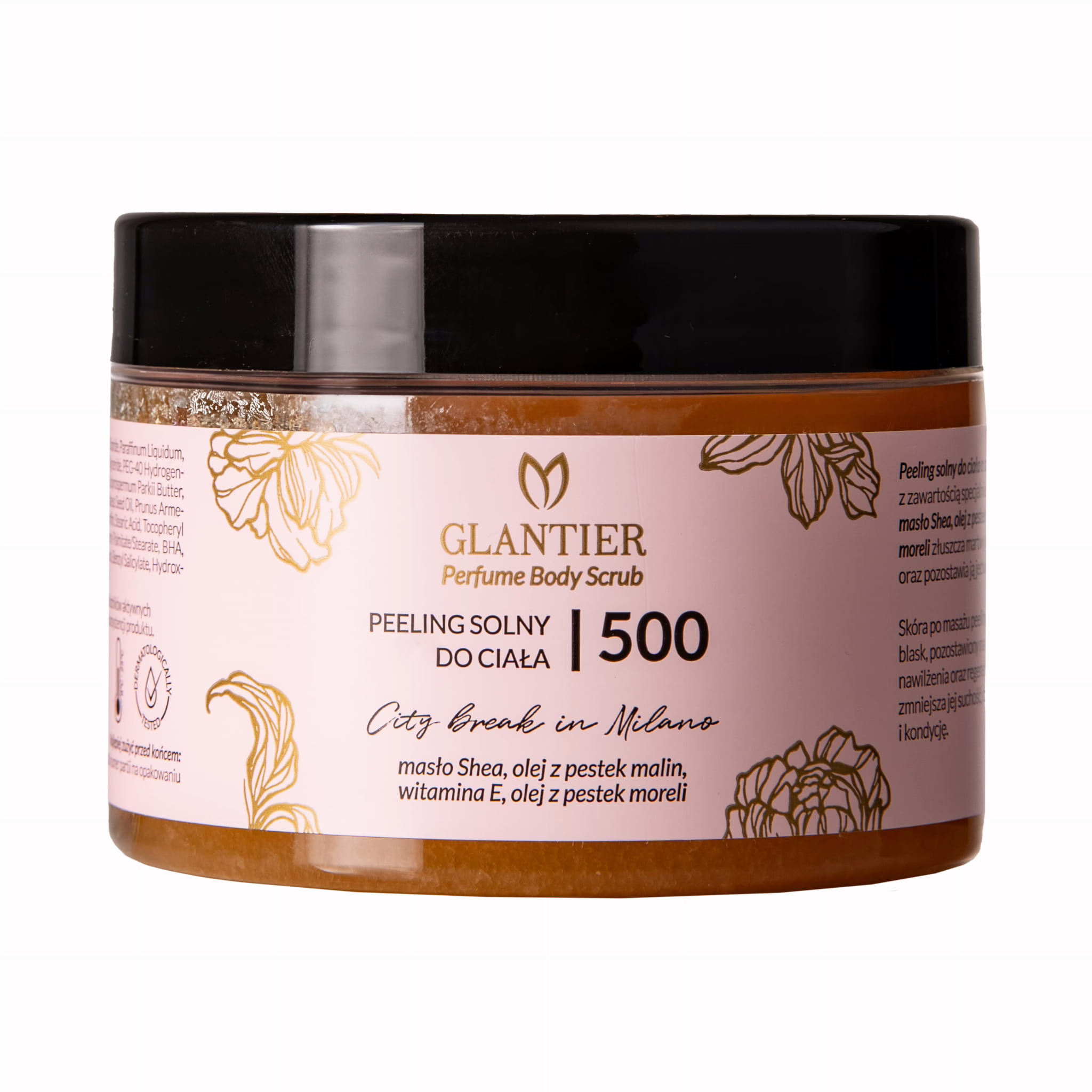 Glantier 500 Peeling Solny Do Ciała to luksusowy produkt, który nie tylko skutecznie oczyszcza skórę, ale także otula ją zmysłowym, eleganckim zapachem inspirowanym kultowym zapachem.