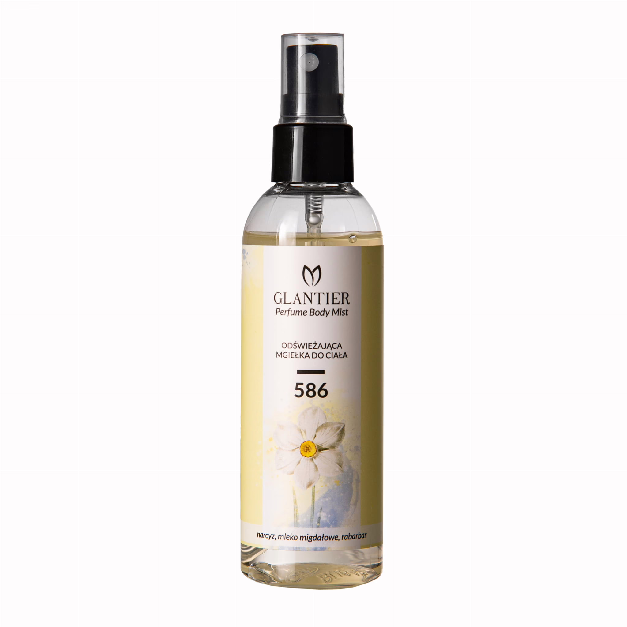 Mgiełka do ciała Glantier 586 Subtelne zaperfumowanie na poziomie 2% sprawia, że mgiełka doskonale odświeża i zapewnia delikatny aromat na co dzień. Idealna zarówno w pracy, w podróży, jak i podczas intensywnego dnia, daje uczucie lekkości i świeżości. Dzięki wygodnej butelce z atomizerem o pojemności 100 ml zawsze masz ją pod ręką, gotową do użycia w każdej chwili.