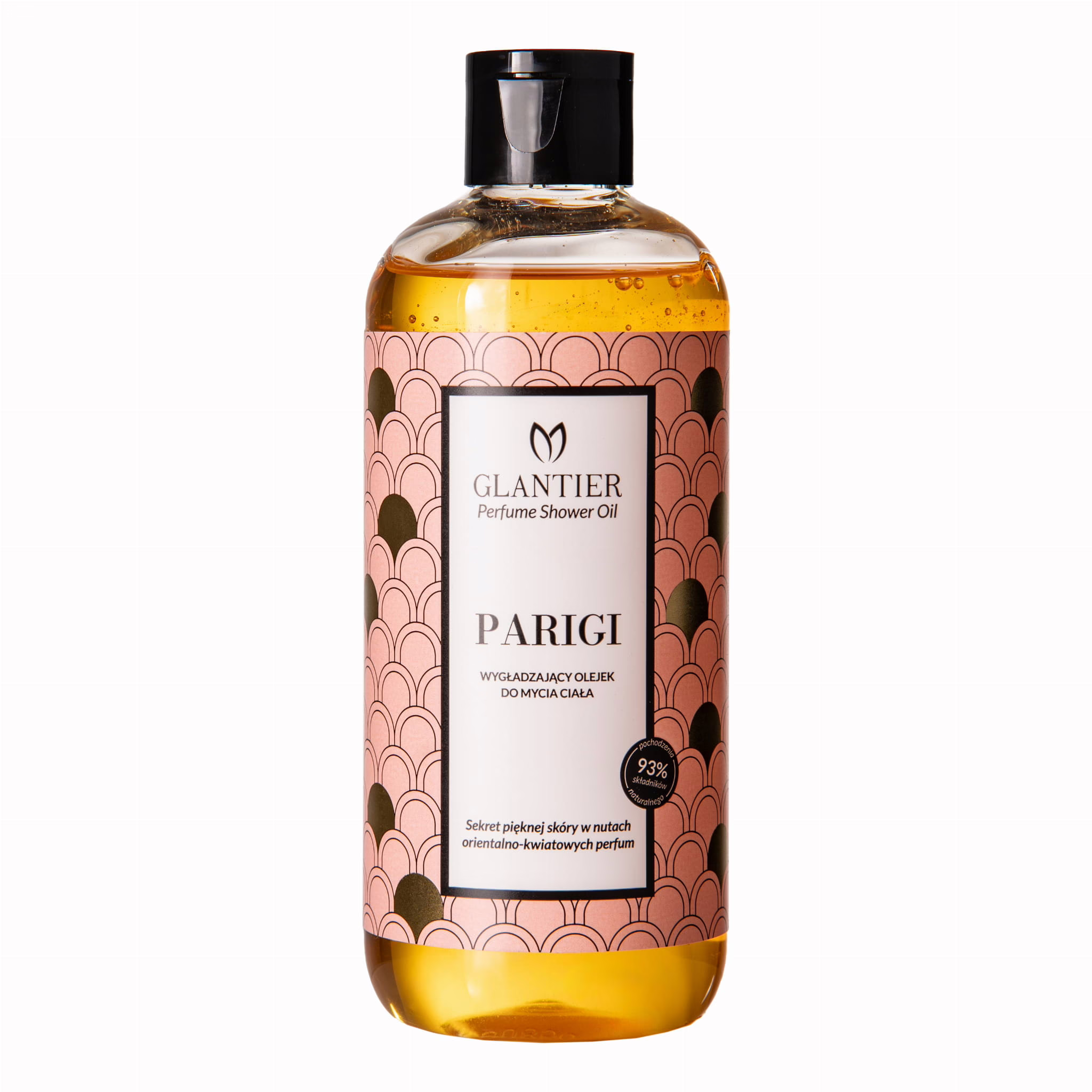 Olejek do mycia ciała PARIGI 300 ml to luksusowy produkt, który zamieni każdą kąpiel w niezapomniane doświadczenie zmysłowe. Formuła olejku z nutami zapachowymi inspirowanymi perfumami Parigi przenosi Cię w świat orientalno-kwiatowej elegancji. Połączenie bergamotki, tangerynki i róży w nutach głowy przyciąga świeżością, by w sercu zapachu odkryć subtelną magnolię, fiołek i drzewo cedrowe. Baza wanilii, brązowego cukru i piżma sprawia, że skóra otula się zmysłową aurą, która utrzymuje się na niej przez wiele godzin.