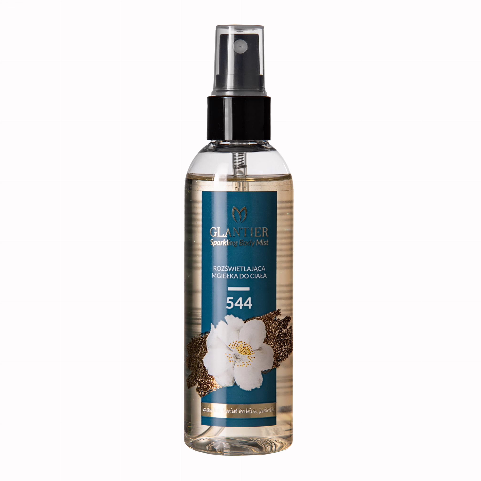 Mgiełka do ciała Glantier 544 to subtelny sposób na odświeżenie z eleganckim akcentem. Dzięki zawartości drobinek rozświetlających, skóra zyskuje zdrowy blask, a orientalno-kwiatowy zapach utrzymuje się przez cały dzień. To letnia wersja bestsellerowych perfum Glantier 544, oferująca lekką formułę, która delikatnie otula ciało, jednocześnie dbając o jego kondycję dzięki składnikom aktywnym.