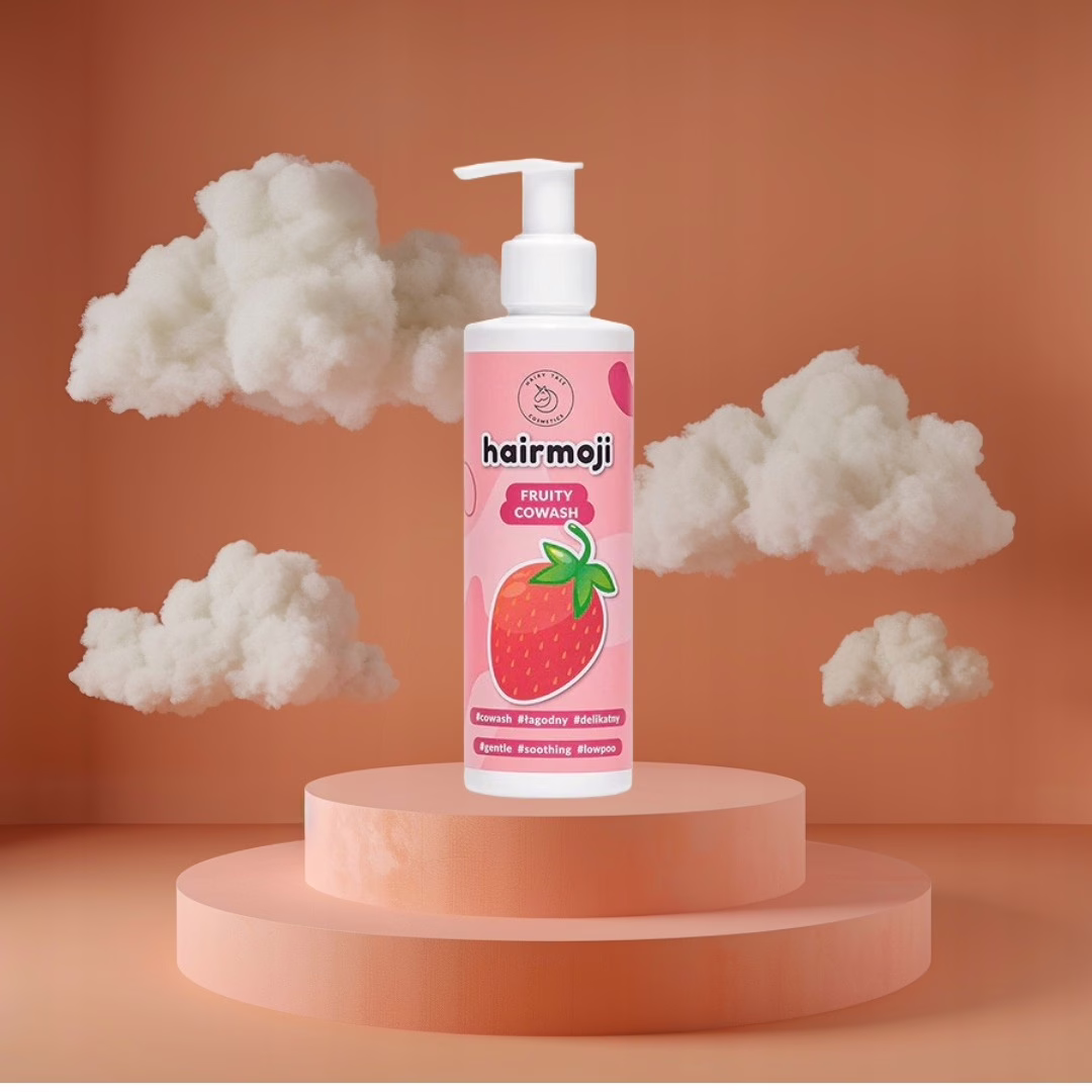 HAIRMOJI Fruity Co-wash to wyjątkowy, wegański szampon w kremie, który łączy w sobie działanie odżywki i delikatnego środka myjącego. Idealny do codziennego mycia, a także jako doskonały wybór pomiędzy szamponami o silniejszym działaniu. Dzięki swojej łagodnej formule typu co-wash, nie tylko skutecznie oczyszcza skórę głowy, ale również ją nawilża i koi, nie powodując podrażnień ani uczucia ściągnięcia.