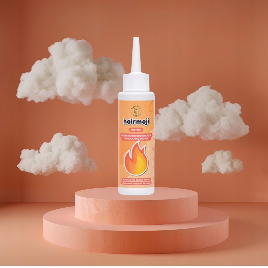 HAIRMOJI On Fire Stimulating Lotion to intensywnie działająca, wegańska wcierka, która rozgrzewa skórę głowy, stymulując wzrost włosów i poprawiając ich kondycję. Jej unikalna formuła łączy w sobie działanie rozgrzewające, które wspomaga mikrocyrkulację, oraz silne składniki aktywne, takie jak chrzan, czarny pieprz, kardamon, imbir, kakao, niacynamid, aktywny peptyd oraz kompleks nawilżający. Dzięki tym składnikom wcierka przyspiesza wzrost nowych, mocniejszych pasm i poprawia ich ogólną jakość.