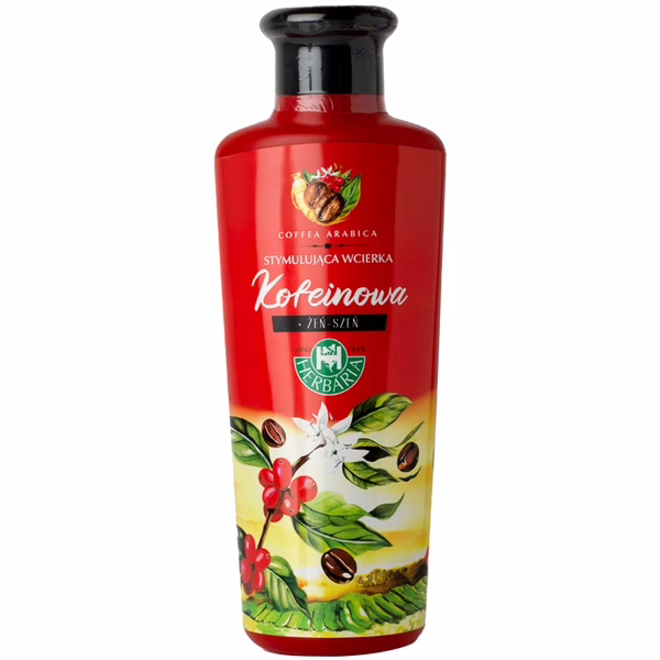 Wcierka kofeinowa powstała na bazie alkoholowego wyciągu z żeń-szenia. Składnik ten posiada właściwości wzmacniające włosy oraz ułatwiające przenikanie składników aktywnych. Dodatkowo skład został wzbogacony o kofeinę, nacynamid, pantenol oraz hydrolizowaną keratynę.