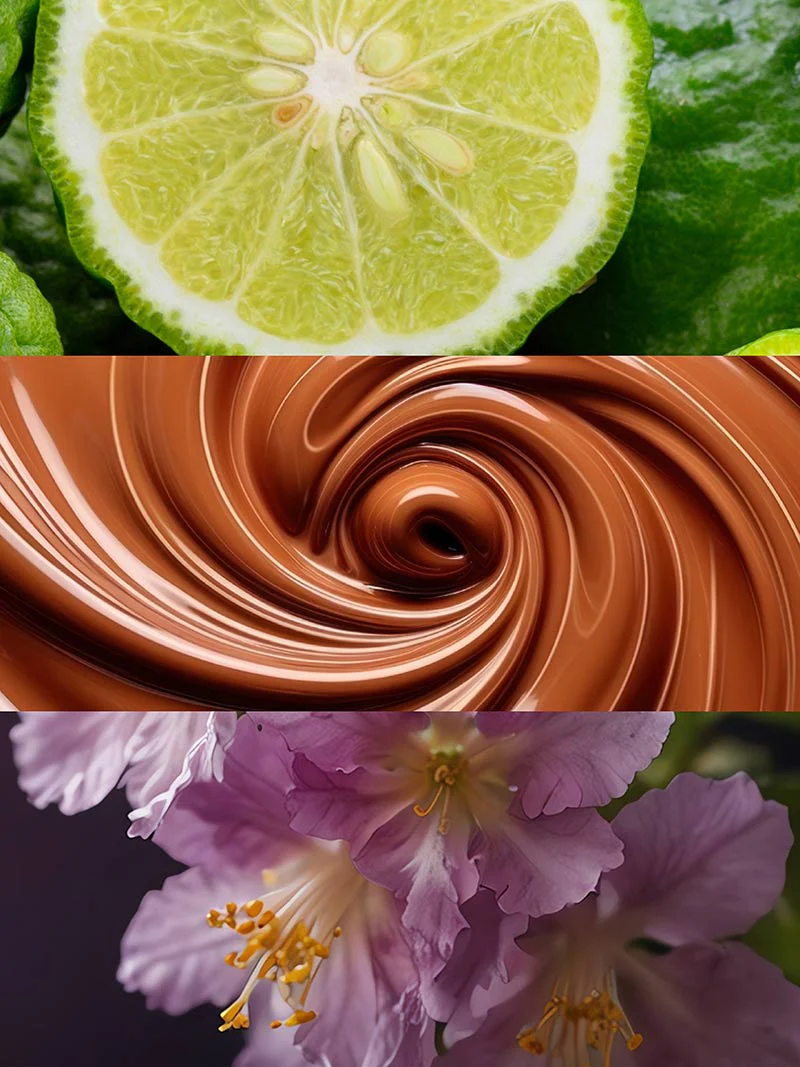 Już od pierwszych chwil wyczuwalna jest bergamotka, która wnosi świeży, cytrusowy akcent i dodaje kompozycji lekkości. W sercu zapachu pojawia się pralina, nadająca mu słodkiego, gourmandowego charakteru, który przyciąga i uzależnia. Bazę stanowi paczula, która wprowadza głębię, trwałość oraz lekko orientalny, zmysłowy akcent.