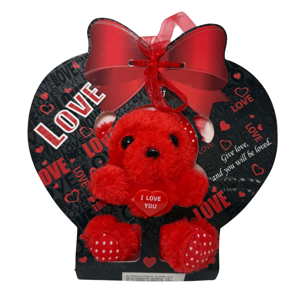 Uroczy, czerwony pluszowy miś to klasyczny symbol miłości i czułości. Miękki w dotyku, starannie wykonany i zapakowany w ozdobną kartonową podkładkę z romantycznym motywem LOVE, od razu przyciąga wzrok i wywołuje uśmiech.