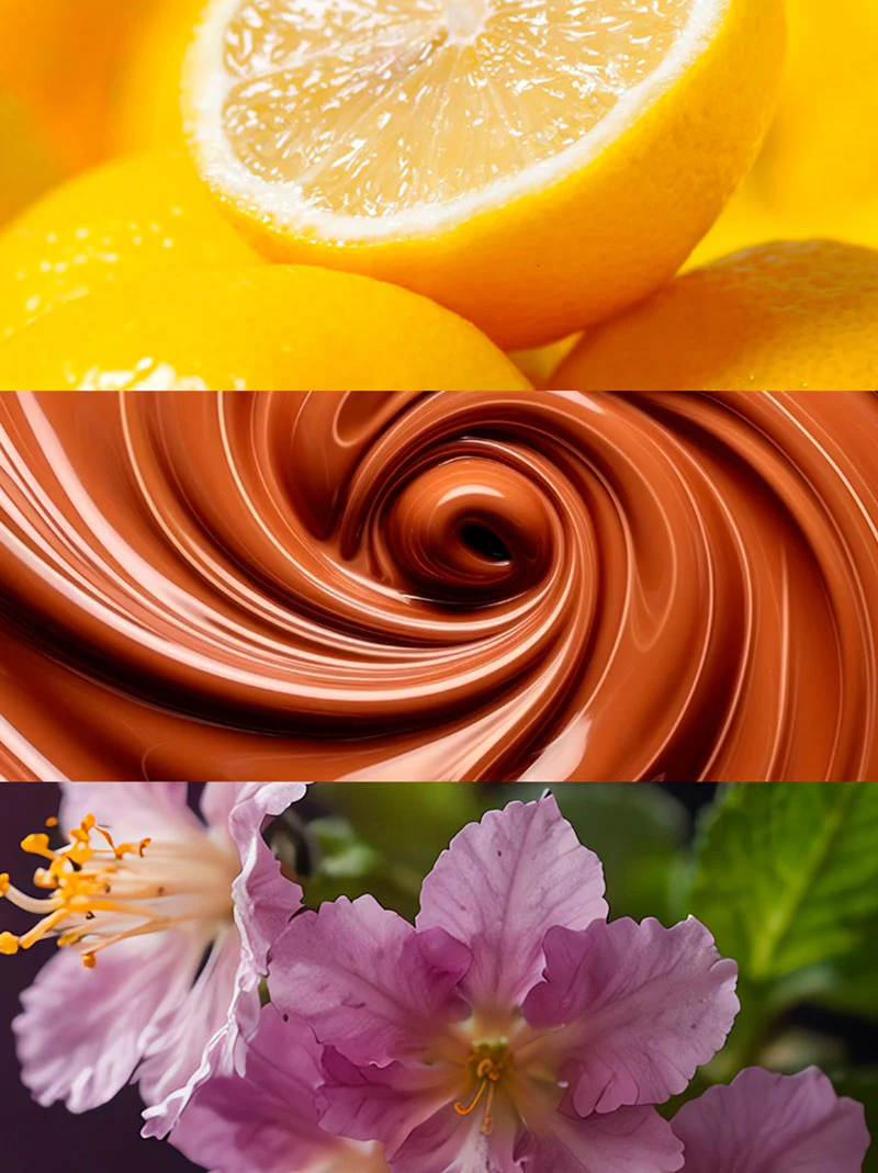 Już od pierwszych chwil wyczuwalna jest cytryna sycylijska, która nadaje kompozycji świeżości, lekkości i energetycznego akcentu. W sercu zapachu pojawia się pralina, wprowadzająca słodki, kremowy i lekko deserowy charakter, który nadaje całości wyjątkowej zmysłowości. Bazę tworzy paczula, która dodaje zapachowi głębi, elegancji i trwałości, pozostawiając wyrafinowany, męski ślad na skórze.