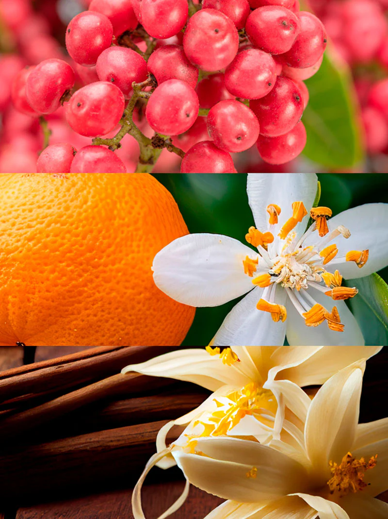 Już od pierwszych chwil wyczuwalny jest pieprz, który wnosi pikantny, intrygujący akcent i nadaje kompozycji energii. W sercu zapachu rozwija się kwiat pomarańczy, dodający całości kobiecej elegancji oraz subtelnej, kwiatowej słodyczy. Bazę stanowi wanilia, która otula zapach ciepłą, kremową nutą, zapewniając trwałość i niezwykle zmysłowe wykończenie.