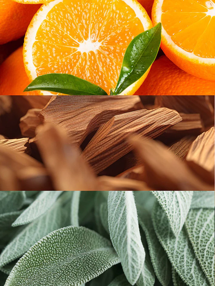 Już od pierwszych chwil wyczuwalna jest włoska pomarańcza, która wnosi świeży, lekko słodki i energetyczny akcent, dodając kompozycji lekkości i przyjemnej wyrazistości. W sercu zapachu pojawia się drzewo sandałowe, nadające kremowej głębi, ciepła i elegancji. Bazę dopełnia szałwia, wprowadzająca aromatyczną świeżość i subtelny, męski charakter.